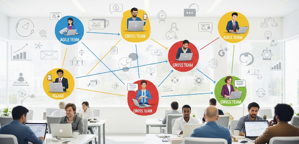 예: 구글, 스포티파이, 넷플릭스 등은 팀 기반의 ‘애자일 조직’을 도입하여, 자율과 소통을 중심으로 한 빠른 실험과 피드백을 가능하게 합니다. 스타트업은 직책보다 역할 중심으로 구성되며, 구성원들은 필요한 만큼 연결되고, 분산되며, 다시 조합됩니다. 이러한 조직은 거미줄처럼 중심이 고정되어 있지 않고, 정보와 권한이 여러 방향으로 동시에 흐릅니다.