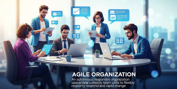 . 애자일 조직(Agile Organization) - 불확실성과 빠른 변화에 유연하게 대응하기 위해 소규모 팀 단위로 움직이는 자율적•반응적 조직 구조.