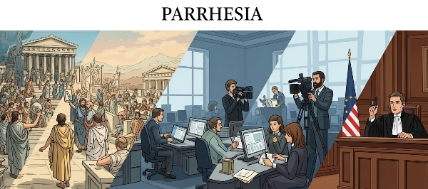 "파레시아는 고대 그리스 민주주의에서 시민의 권리이자 의무였다. 하지만 진정한 파레시아는 단순한 자유로운 발언을 넘어, 말하는 자의 윤리적 책임과 용기를 요구한다."