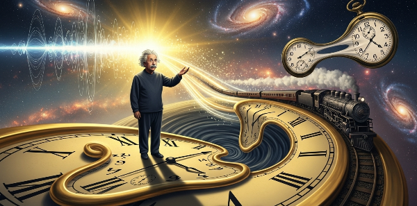 제3장 특수 상대성 이론과 ‘기적의 해’: 1905년 아인슈타인이 발표한 특수 상대성 이론(시간 지연, 길이 수축, 질량-에너지 등가원리 E=mc²)의 핵심 개념들을 설명하며, 이 이론이 어떻게 시간과 공간에 대한 우리의 상식을 뒤흔들었는지 다룹니다.