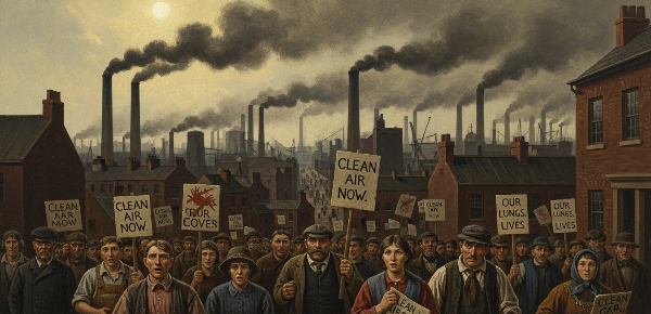 "'가서 저 연기를 멈추자!'는 외침은 증기기관에 맞선 저항의 순간이었다. 공장의 연기와 오염에 맞서 싸웠던 노동자들과 시민들의 투쟁은 환경 운동의 초기 형태를 보여준다."