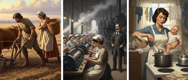 • 3장 성차별의 시작: 저자는 성차별의 기원을 역사적으로 추적합니다. 인류 초기 수렵채집 사회에서는 남녀가 비교적 평등했지만, 남성의 근력이 중요한 쟁기 농업이 시작되면서 여성의 지위가 하락하기 시작했다고 분석합니다. 산업화 시대에도 여성은 공장에서 저임금 노동에 시달리거나, 가정 내 무급 돌봄 노동을 전담하는 이중의 굴레에 갇혔습니다.