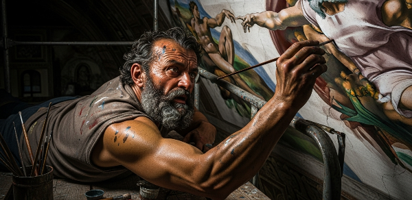 미켈란젤로는 레오나르도, 라파엘로와 함께 전성기 르네상스를 이끈 3대 거장입니다. 그는 인체 해부학에 대한 깊은 이해를 바탕으로, 인간 육체가 가진 역동적인 에너지와 극적인 감정을 표현하는 데 독보적인 경지에 올랐습니다. 그의 작품에서 느껴지는 압도적인 힘과 비장미, 장엄함을 동시대 사람들은 '테리빌리타(terribilità, 경외감을 자아내는 힘)'라고 불렀습니다. 또한, 의도적으로 조각을 미완성으로 남기는 듯한 그의 '논 피니토(non-finito)' 기법은, 물질(돌)에서 정신(형상)을 해방시키려는 예술가의 투쟁을 상징하는 것으로 해석됩니다.