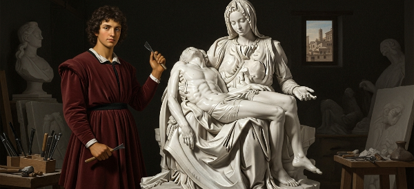 젊은 시절 메디치 가문에서 접한 신플라톤주의 철학은 그의 예술 세계 전체를 관통하는 핵심 사상입니다. 신플라톤주의는 이데아(Idea)라는 완벽한 형상이 현실 세계의 불완전한 물질 속에 갇혀 있다고 봅니다. 미켈란젤로에게 조각이란, 자신의 창의력을 뽐내는 행위가 아니라, 대리석이라는 물질 속에 이미 갇혀 있는 완벽한 형상(이데아)을 해방시키는 과정이었습니다. - "최고의 예술가는 대리석 덩어리 안에 감춰진 형상 이외에 다른 어떤 착상도 가지고 있지 않다."
