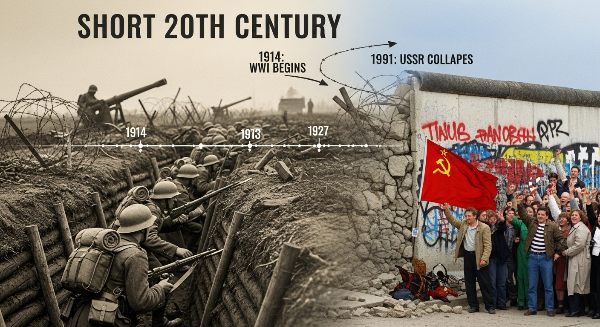 홉스봄은 '짧은 20세기'를 세 개의 전혀 다른 시대로 명확하게 구분하여, 각 시대의 정치, 경제, 사회, 문화를 통합적으로 서술합니다.